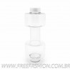 Caixa de som multimídia com luzes, suporte para celular e porta caneta. Material plástico resistente na cor branca fosca, parte superior com falante vazado na área interna, pode ser utilizado como porta caneta ou suporte para celular. Parte inferior branca leitosa com linhas em relevo, borracha inferior anti deslizante e alça de alumínio.