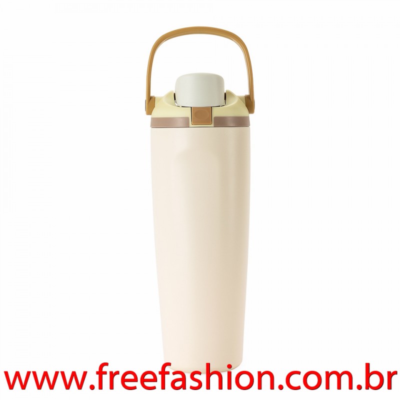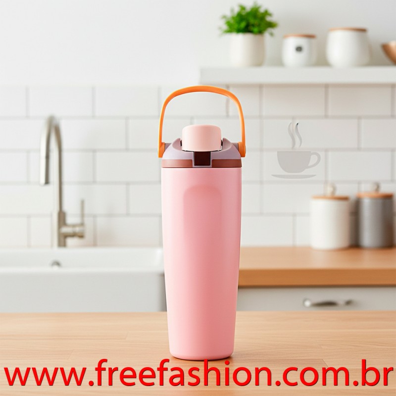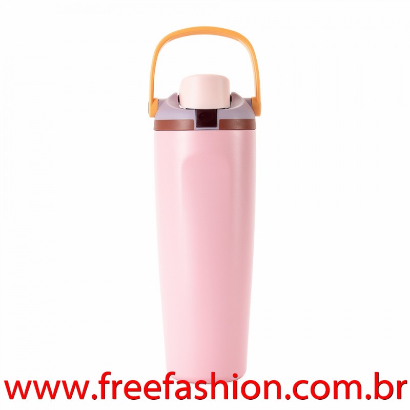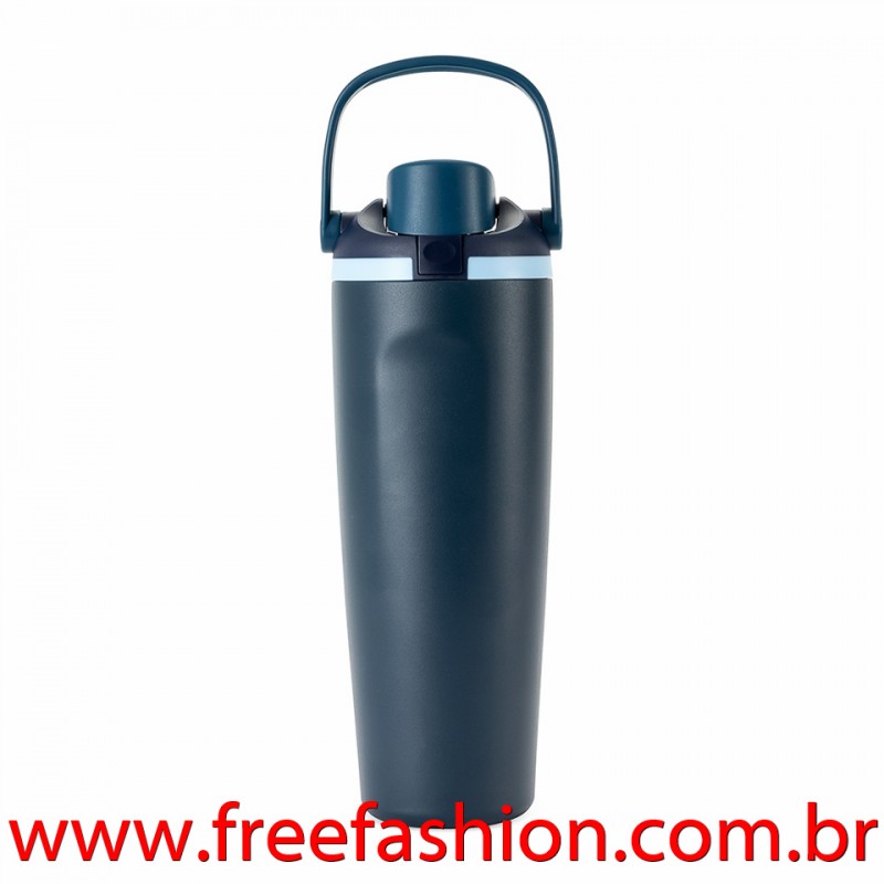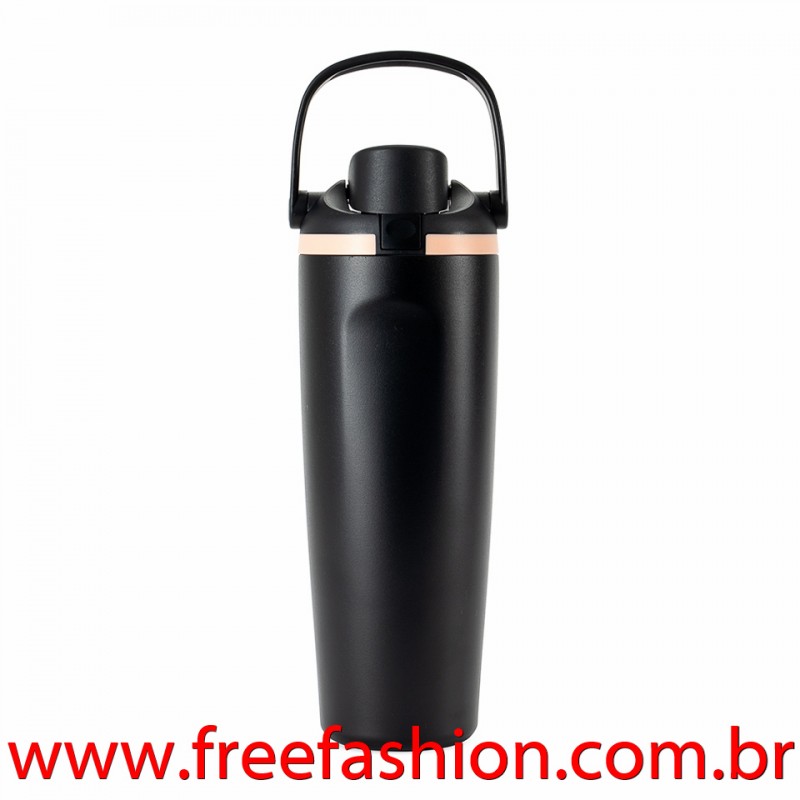 Garrafa térmica em inox com capacidade para até 850ml. Conta com estrutura de parede dupla e vedação a vácuo, ajudando a conservar a temperatura dos líquidos por mais tempo. Possui tampa rosqueável em plástico com protetor para o bocal, botão de acionamento, trava de segurança e alça de mão para transporte. Acompanha canudo para encaixe interno na tampa.